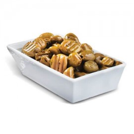 Fermantasyonu tamamlanan iri taneli domat zeytinler;çekirdekleri çıkarılarak soguk ızgara hattında ızgarası yapılır.Daha sonra içine 1.Kalite kurutulmuş domates ,kurutulmuş kapya biber ve sarımsak harmanlaması yapılır.Ürünlerimizde sarımsak tozu bulunmamaktadır...